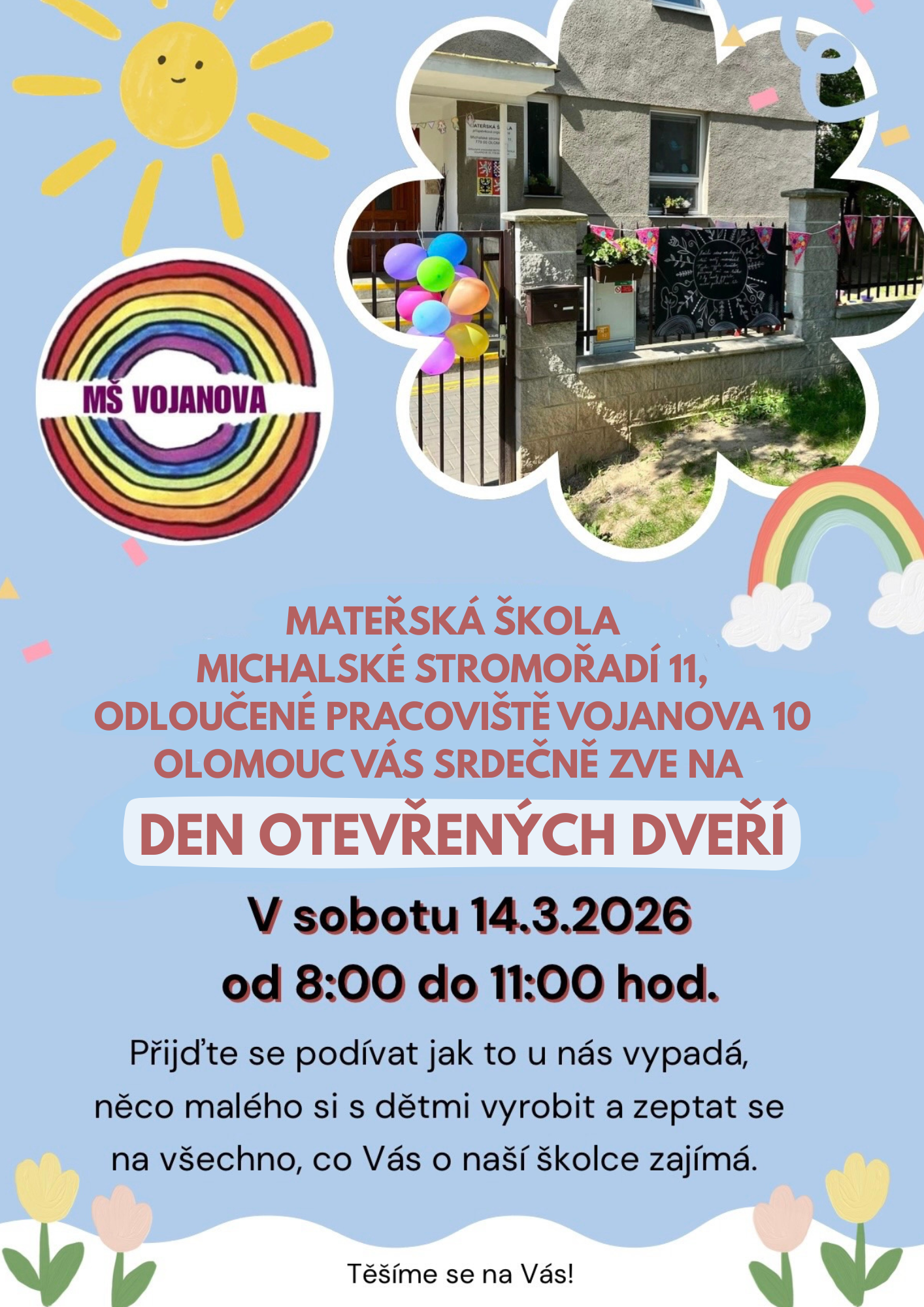 srdečně vás zveme na návštěvu do naší školičky. Přijďte se podívat, jak to u nás vypadá, něco malého si s dětmi vyrobit a zeptat se na všechno, co vás, v souvislosti s naší mateřskou školou, zajímá. Těšíme se na vás🏡❤️